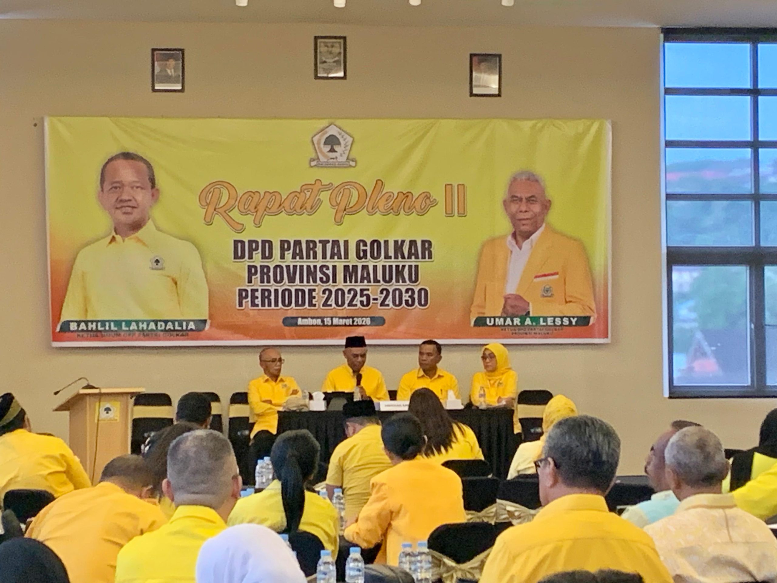 GardaMaluku.com : AMBON,- Rapat pleno Partai Golkar 2026, Minggu, (15/03/2026) yang berlangsung di Kamari Hotel dipimpin Ketua DPD Partai Golkar Maluku, Umar Lessy, didampingi Sekretaris DPD Golkar Maluku Anos Jeremias, serta diikuti jajaran pengurus Partai Golkar Maluku periode 2025–2030.